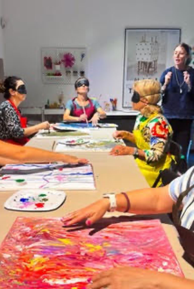 A Casa Rusca, in occasione della prima retrospettiva svizzera dedicata a Niele Toroni, abbiamo vissuto un’esperienza profonda: Non solo abbiamo creato, ma ci siamo anche conosciute. Un momento di sperimentazione, connessione e ascolto profondo, in cui l’arte ha superato i sensi per diventare spazio di incontro. Nel silenzio, nei gesti incerti, nei colori immaginati: qualcosa di vero è emerso. Un’esperienza che ha lasciato il segno, anche senza bisogno di vedere.