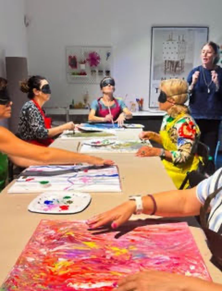 A Casa Rusca, in occasione della prima retrospettiva svizzera dedicata a Niele Toroni, abbiamo vissuto un’esperienza profonda: Non solo abbiamo creato, ma ci siamo anche conosciute. Un momento di sperimentazione, connessione e ascolto profondo, in cui l’arte ha superato i sensi per diventare spazio di incontro. Nel silenzio, nei gesti incerti, nei colori immaginati: qualcosa di vero è emerso. Un’esperienza che ha lasciato il segno, anche senza bisogno di vedere.